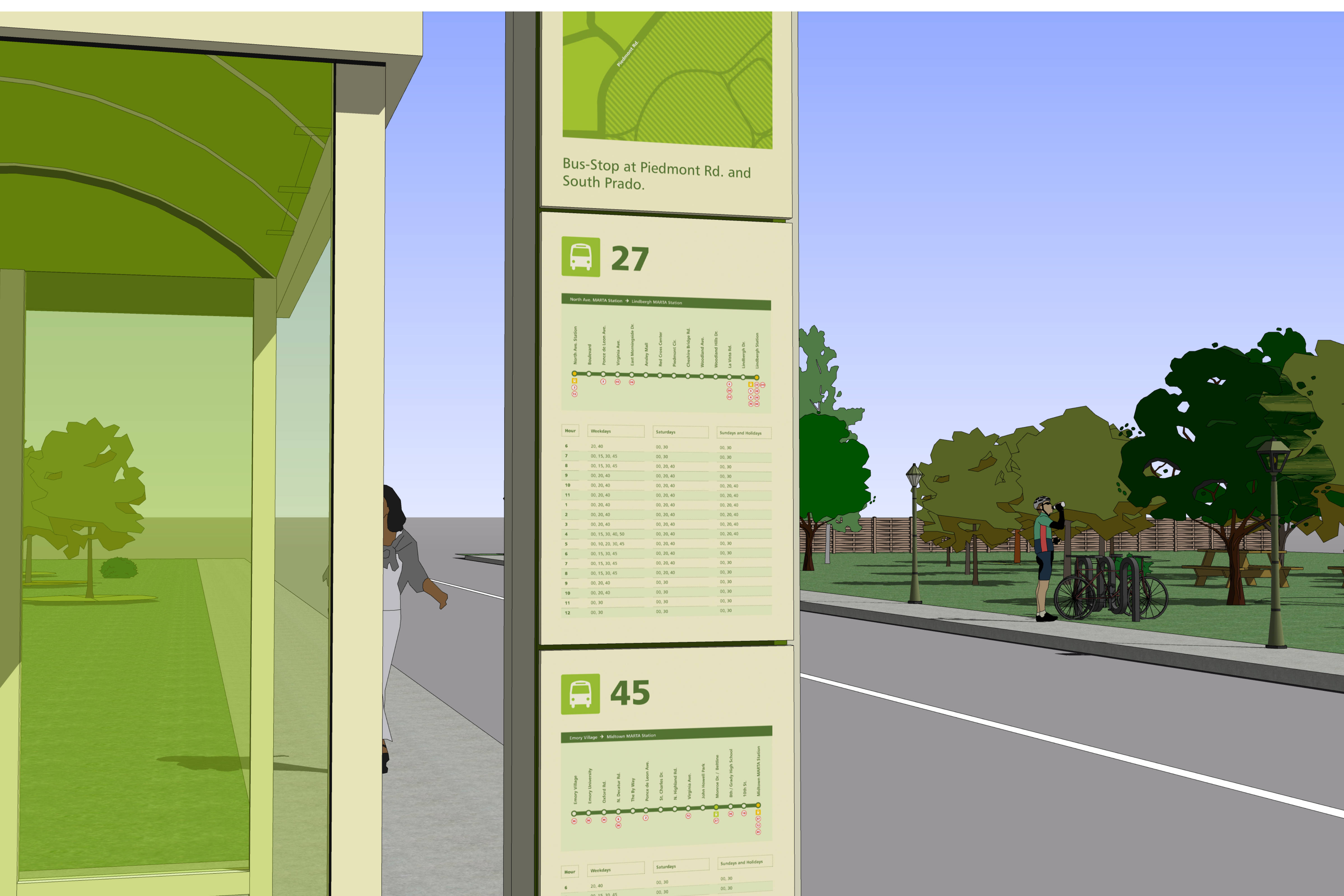 To further enhance commuting in Atlanta, it would be useful to also show users how the MARTA bus system connects to the Beltline and MARTA train lines. At the time, the bus system only used a simple post with a transit number to indicate a bus stop.