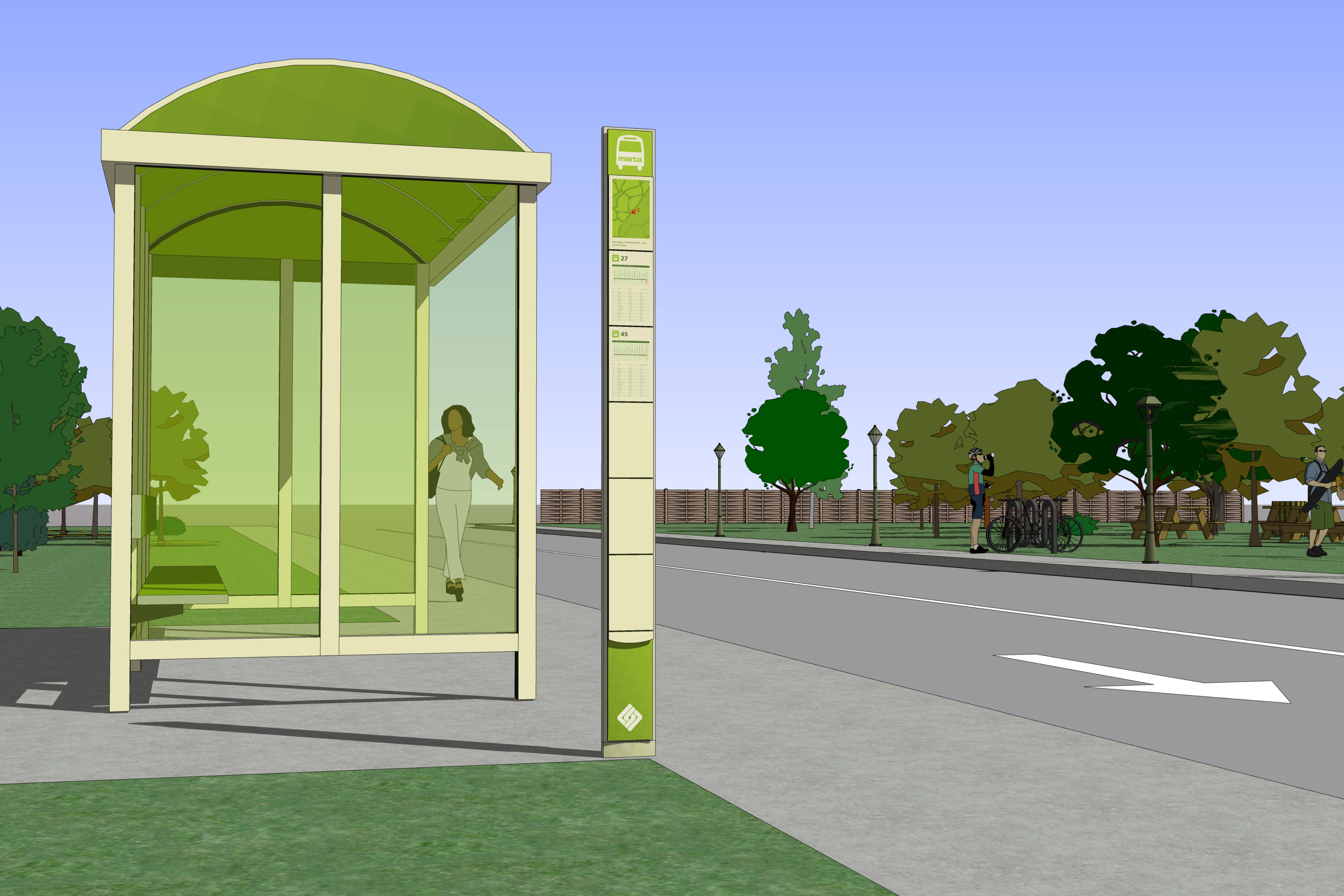 It would be beneficial to users to know where the bus is going and how frequently it arrives at the stop. I designed a new bus stop post that shows the bus routes, transit connections along the routes, and bus arrival times.