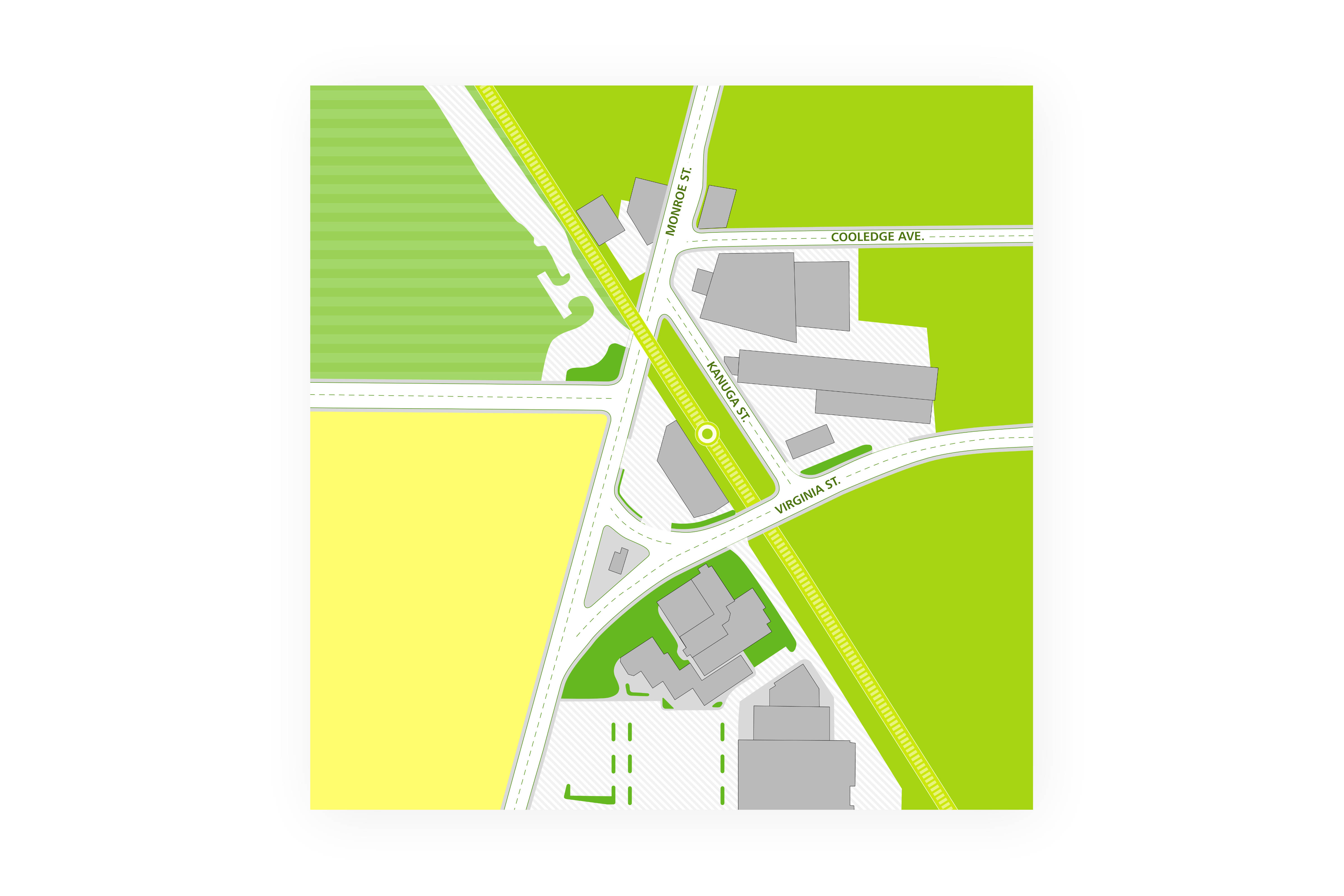 As an aid for understanding the walkability of Atlanta, the maps were illustrated in such a way as to give a visual understanding of how the local area is designed. Atlanta is a conventional American city where there can be a distinct separation between urban and residential areas. Each area type on the map has a distinct visual appearance, which allows users to dramatically improve their commuting plans. For example, the user should find it easier to stay on major streets in more urban areas, rather than cutting through residential neighborhoods.