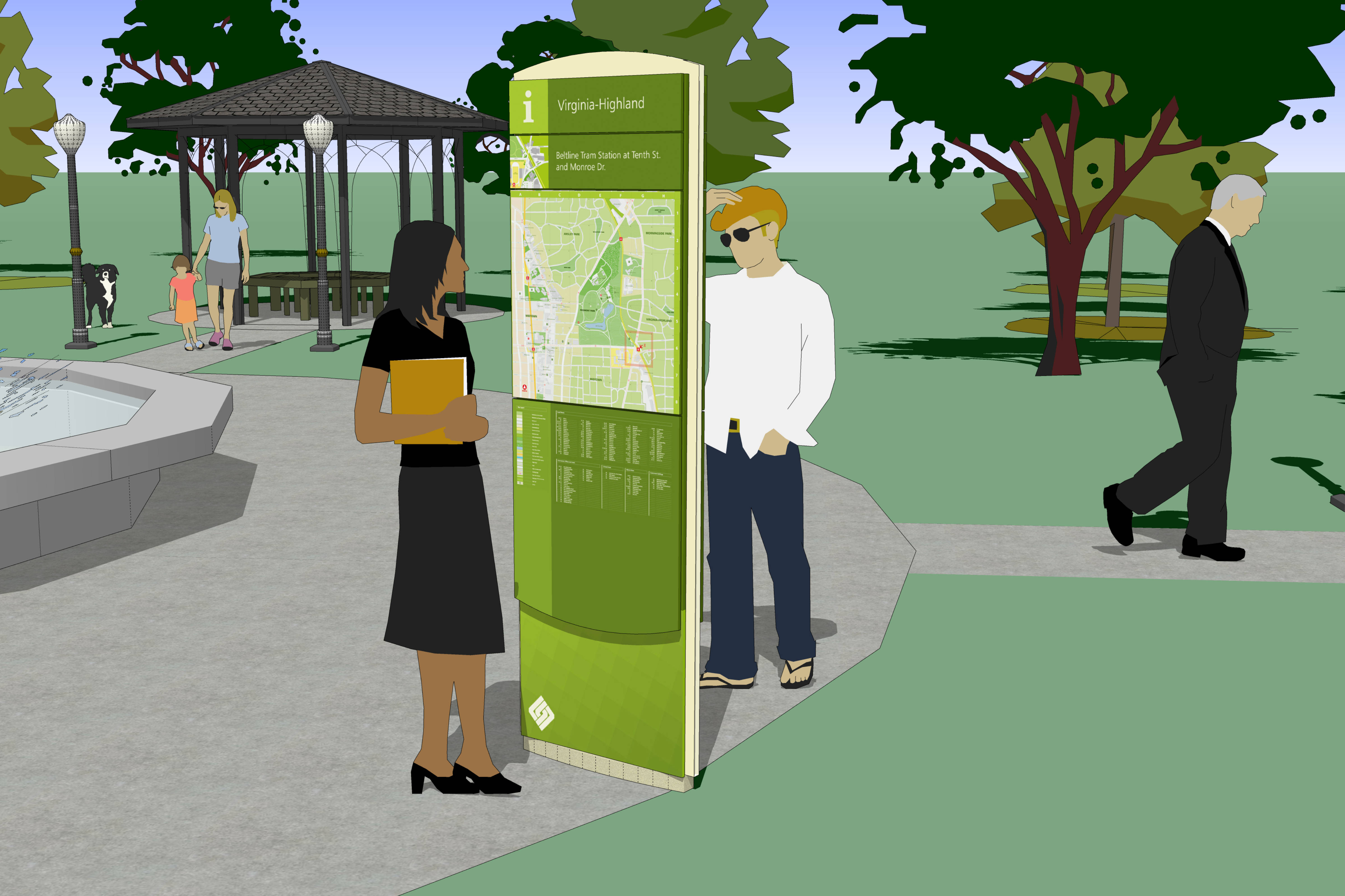 This was a personal project created for my graduate thesis at Georgia State University. I created all aspects of this project – maps, street furniture, 3D models, wayfinding plans, and branding.