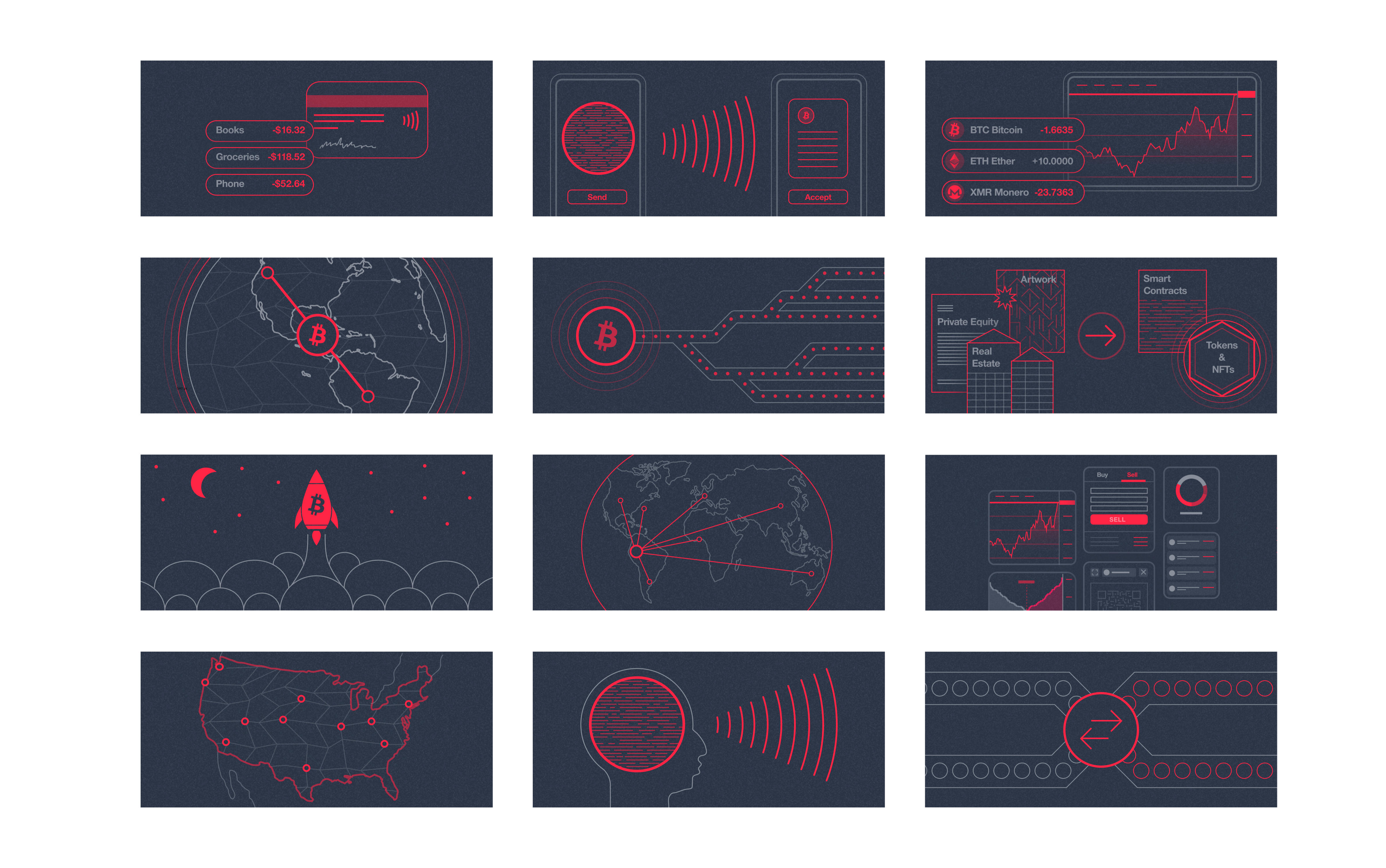 I developed a minimalist aesthetic for AlphaPoint, setting it apart from other cryptocurrency firms. By establishing a distinctive, easy-to-navigate style of illustrations and icons specifically tailored for promotional and marketing purposes, I enhanced the visual appeal and ensured consistency across all materials. Additionally, I designed an editorial grid that effectively organizes content to maximize readability and impact.