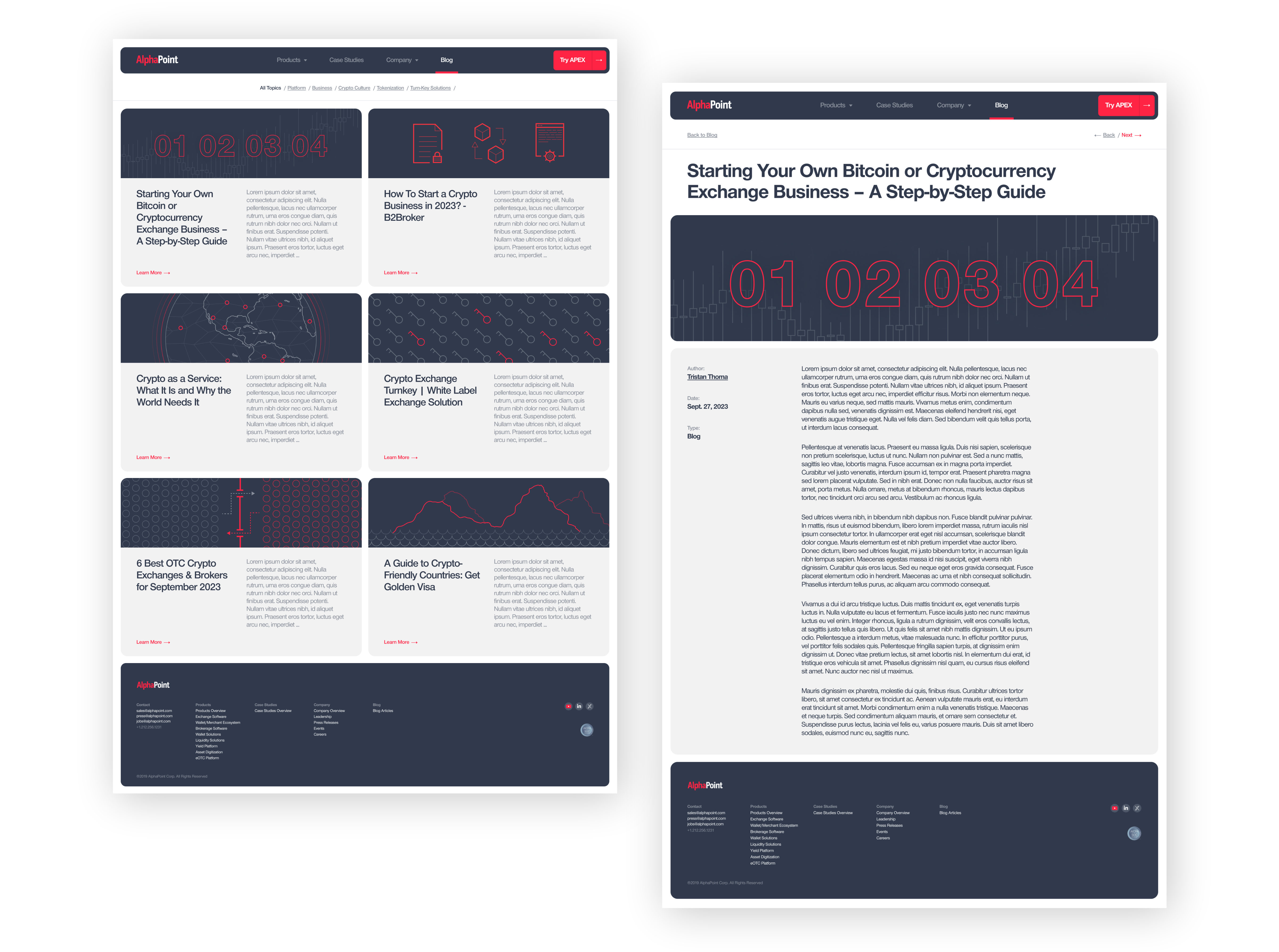 Approach: Internally, we adopted a minimalist creative direction to differentiate the AlphaPoint brand from other crypto businesses. As part of the design, I established an open and easy-to-follow illustration style to maintain visual consistency across all marketing promotions. Additionally, I developed an editorial grid and designed custom icons to improve content organization and recognition. This comprehensive redesign aimed to support a coherent content strategy that engages and retains the target audience.