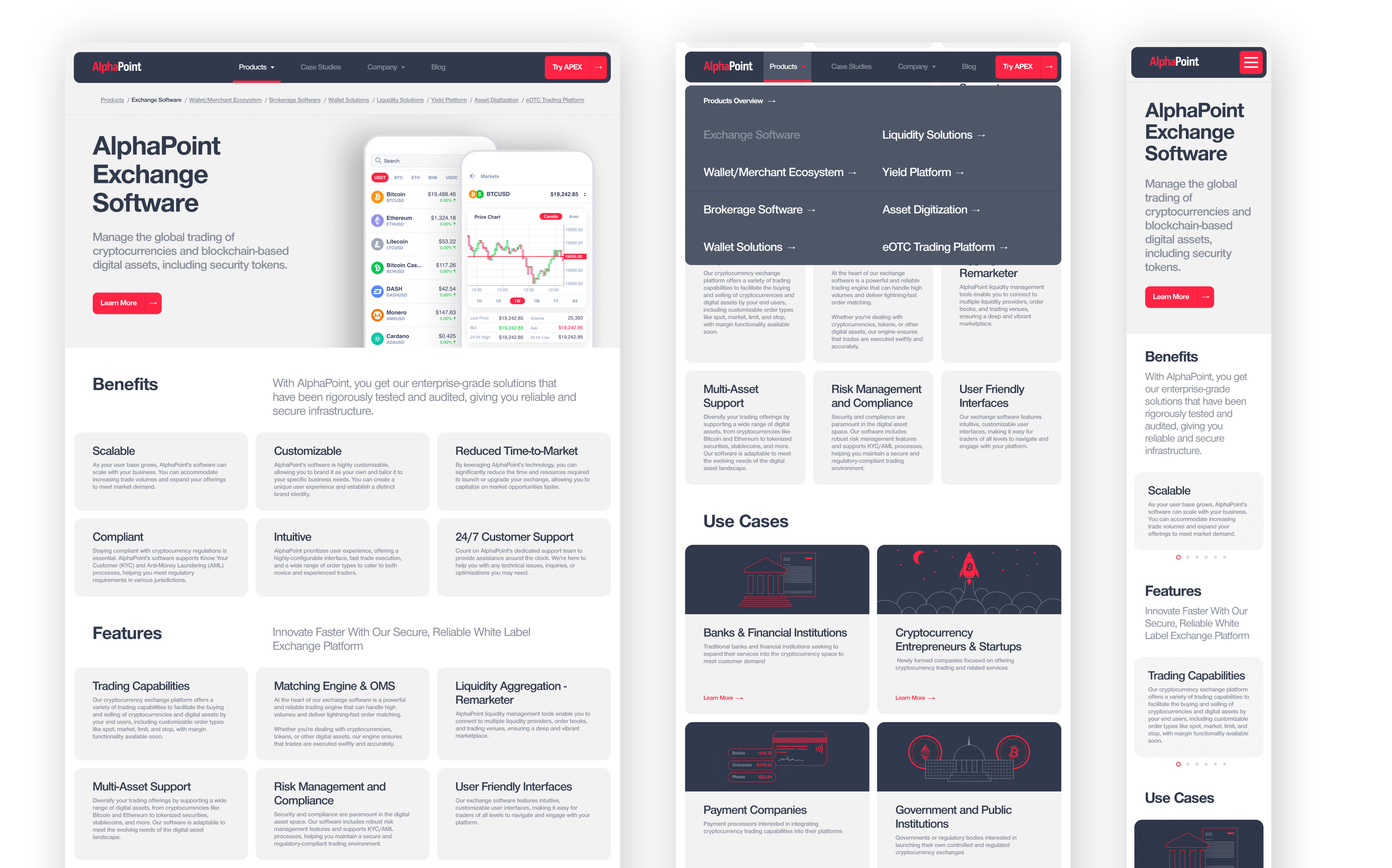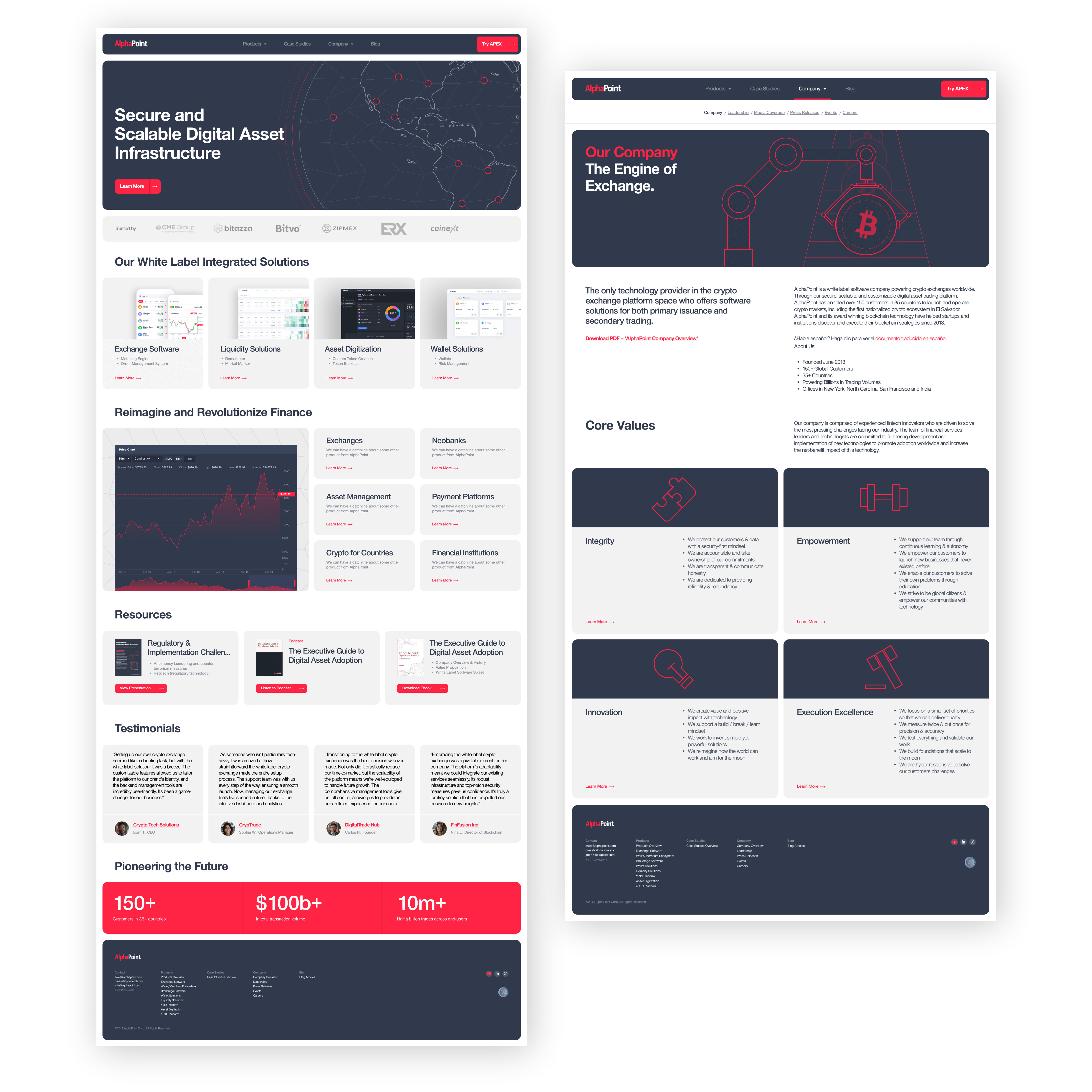 - Homepage – Informational page that gives an overview of AlphaPoint’s main products, technical offerings, testimonials, and statistics.
