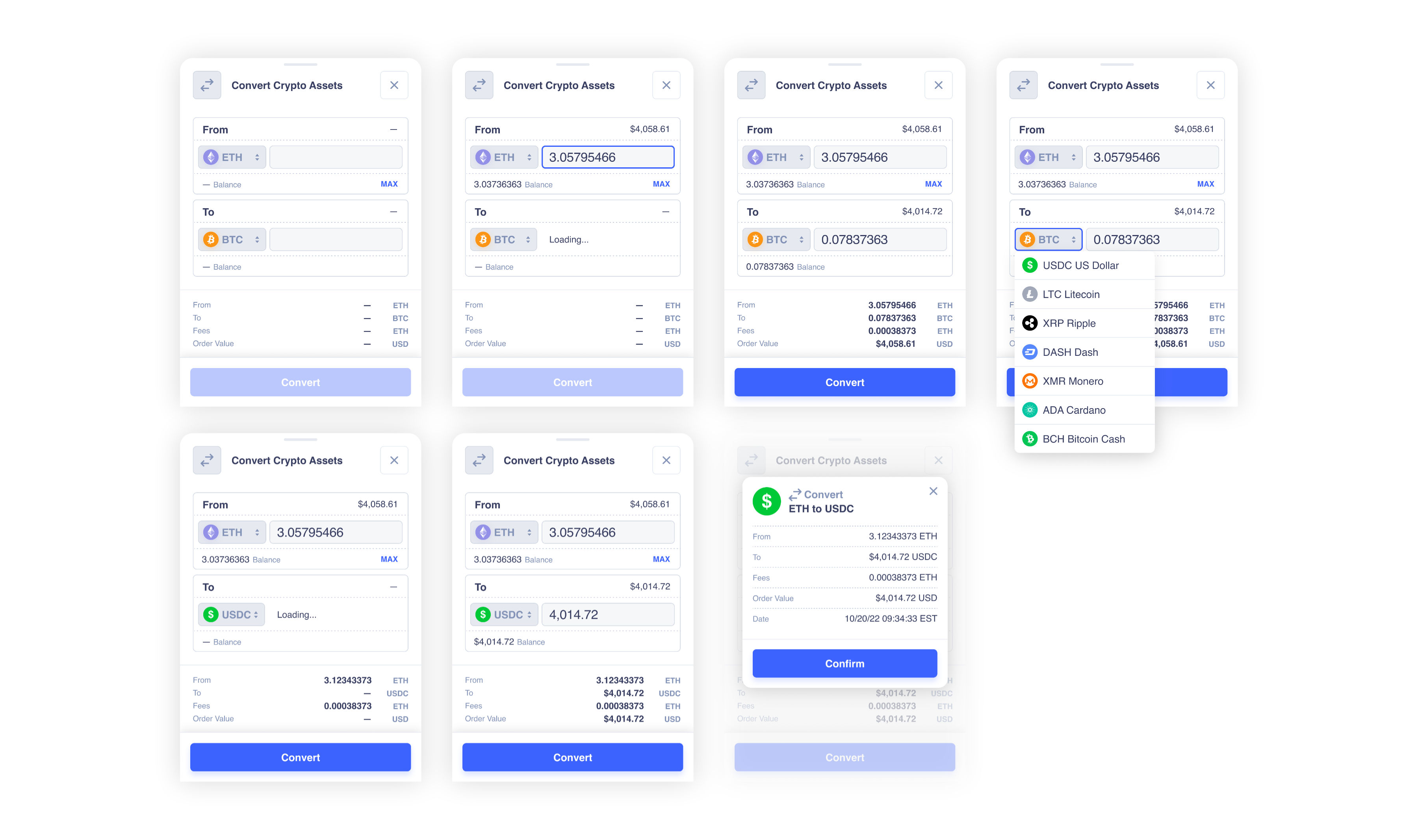 - Here are examples of how you can style and arrange components to build crypto exchange mobile screens.