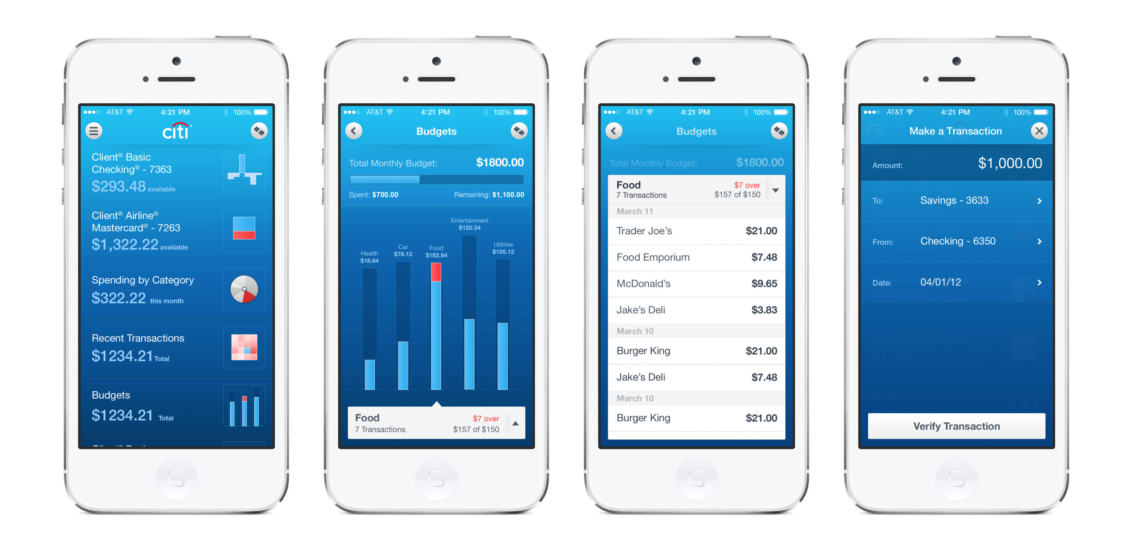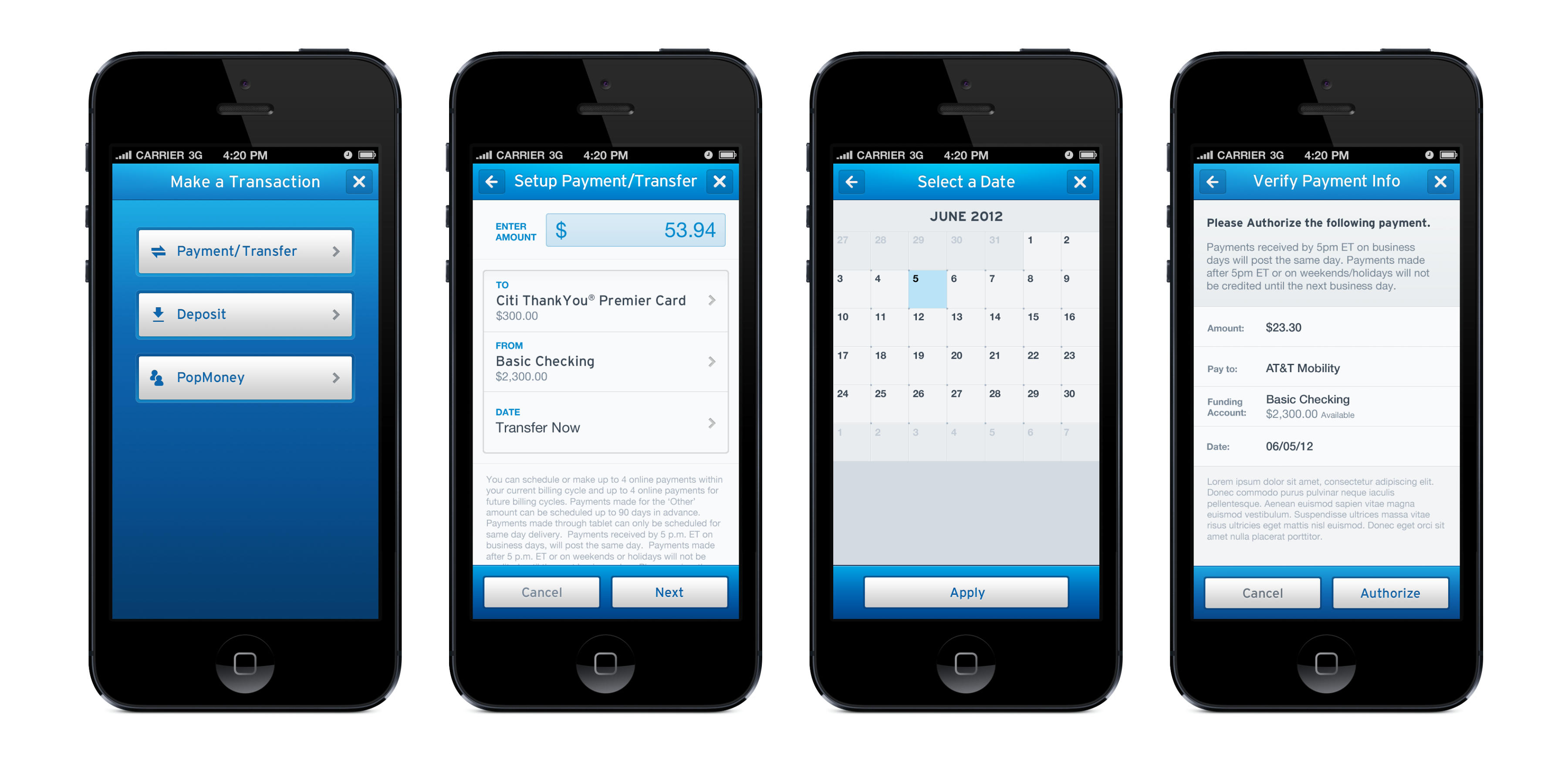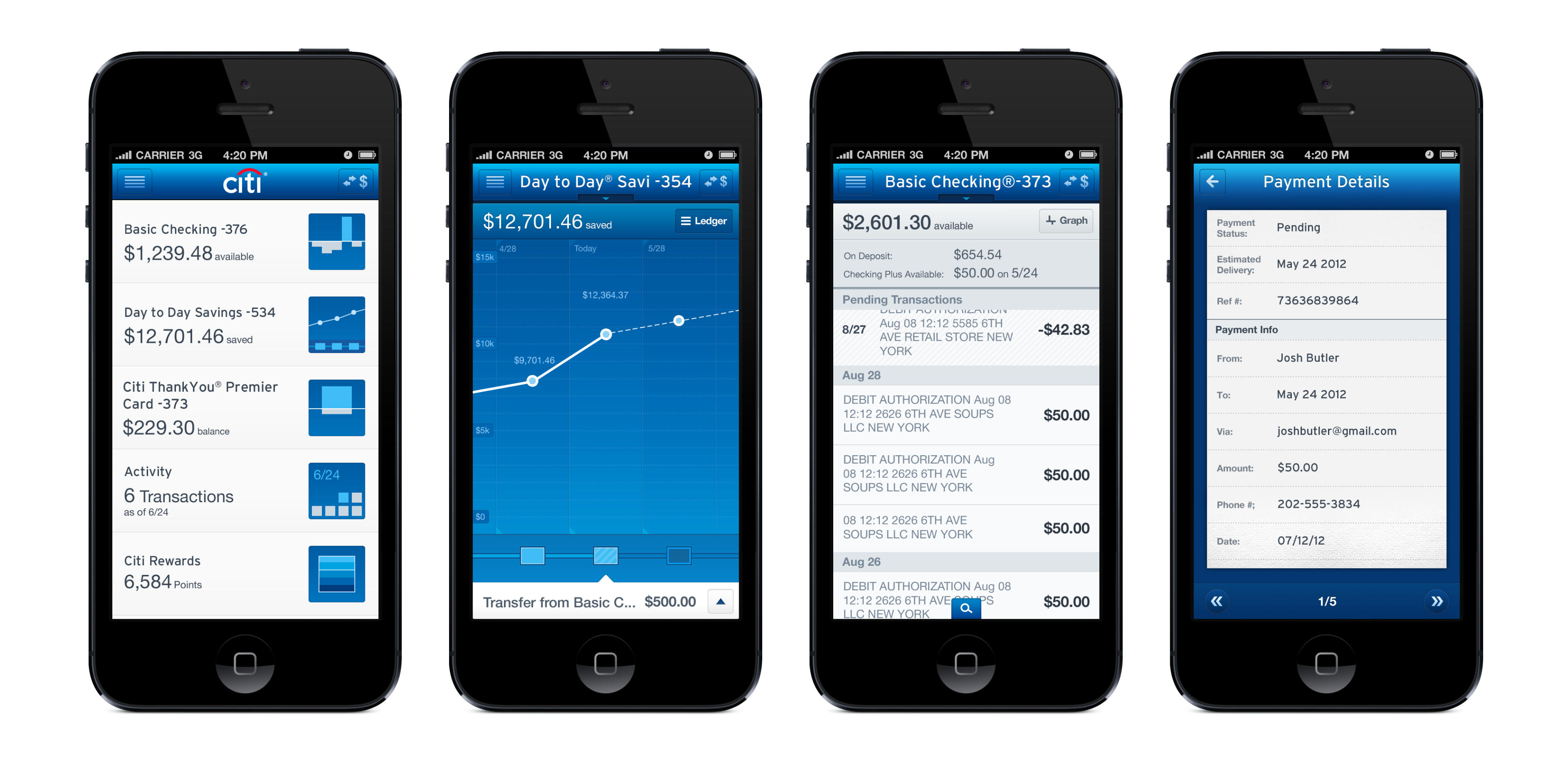 - Over the course of the Citibank engagement we designed for all major mobile touchpoints.