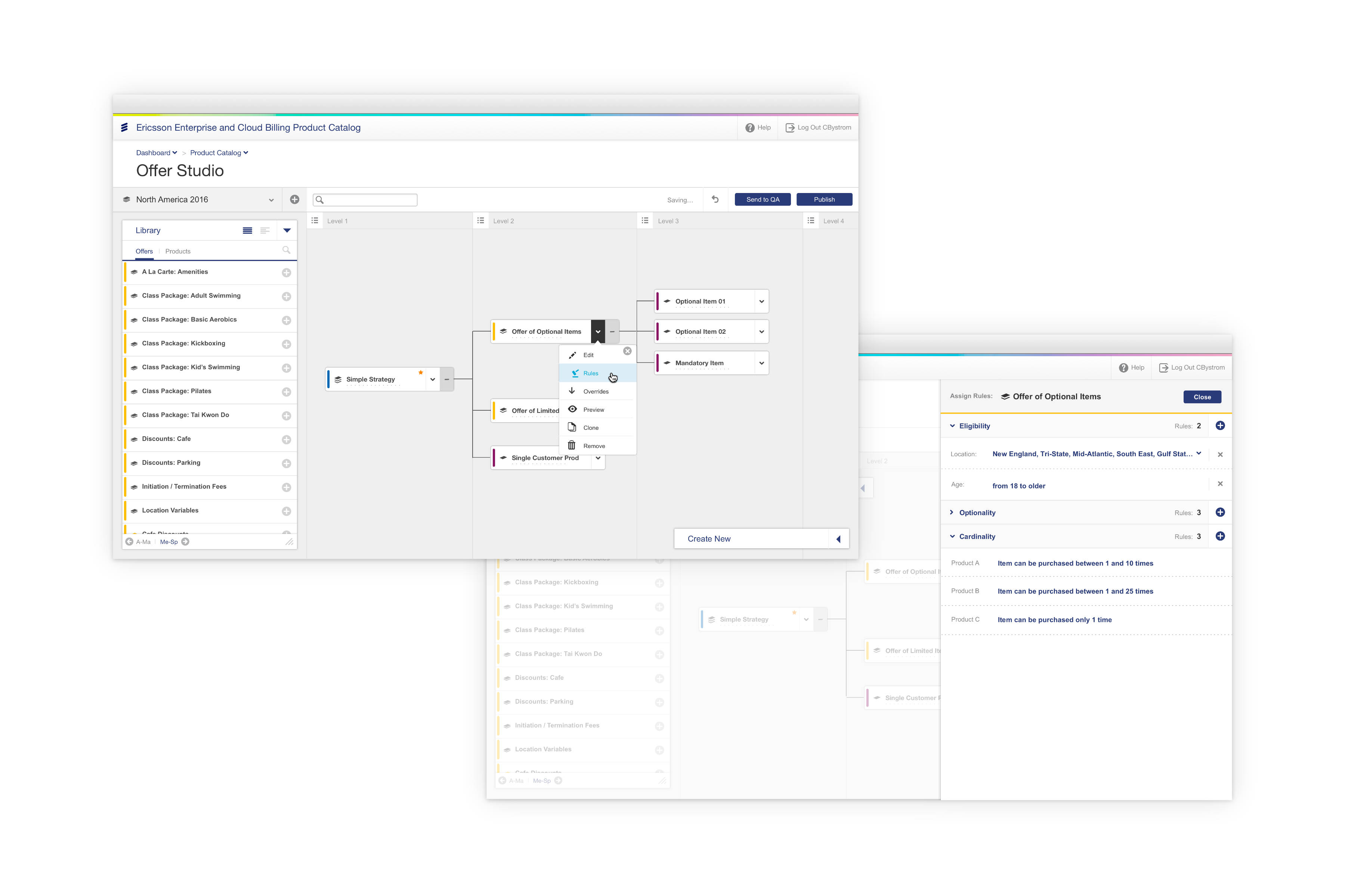 - With all the complexity of building a product offering, the initial Metratech system made it hard for users to visualize their company’s offers and products with all the disconnected tables and other views. We opted for a tree graph to help users build and maintain their product offerings.