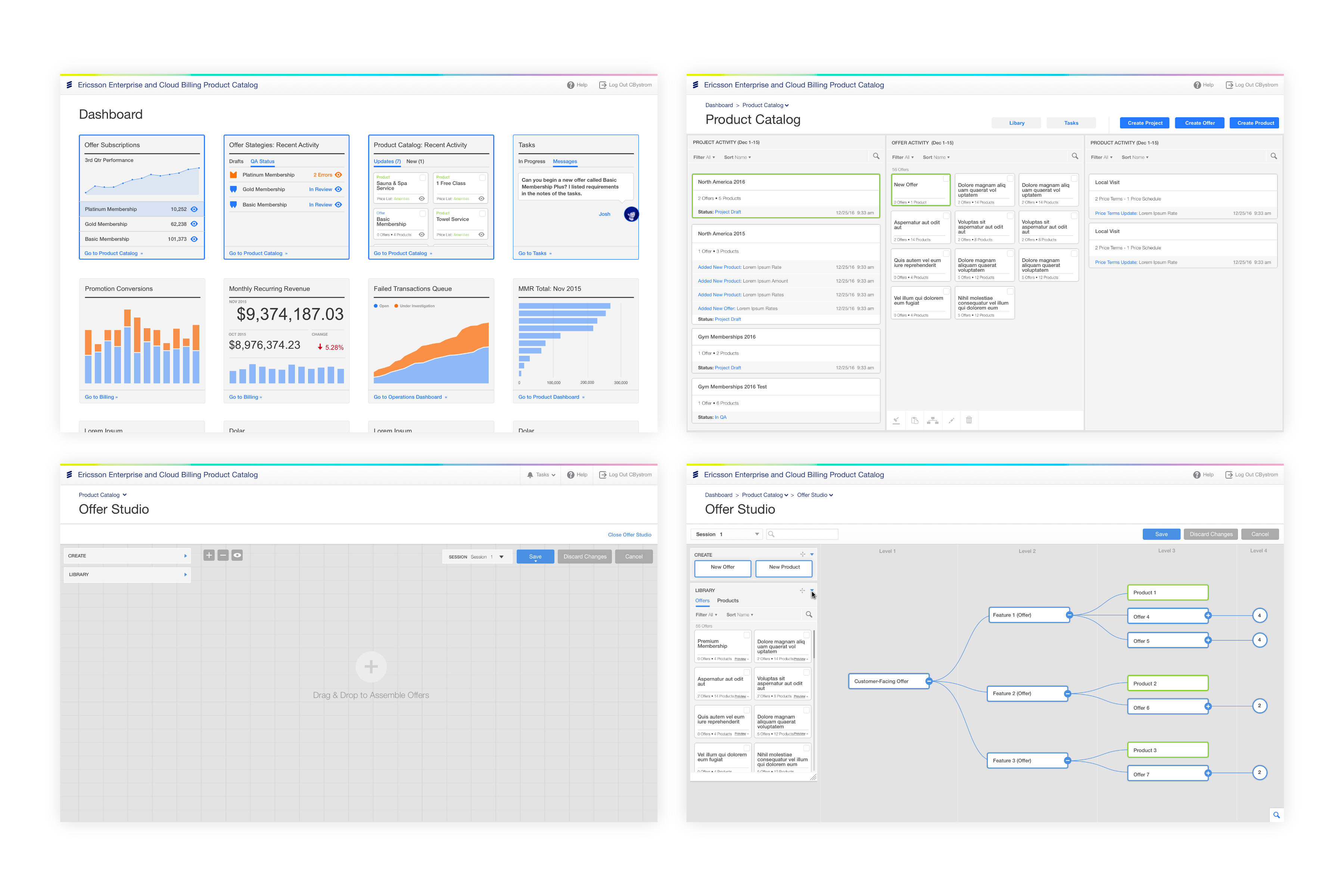 Context and Challenge: Metratech’s enterprise billing platform, known for its robust backend, was hindered by a user interface that was labyrinthine and lacked the intuitiveness needed for clients to effectively manage and create billing catalogs. This limitation often necessitated Metratech’s direct intervention to make updates for clients, especially for complex services across various businesses. After Metratech’s acquisition by Ericsson, the challenge grew to not just enhance the UI for a better client experience but also to align it with Ericsson’s advanced design standards.