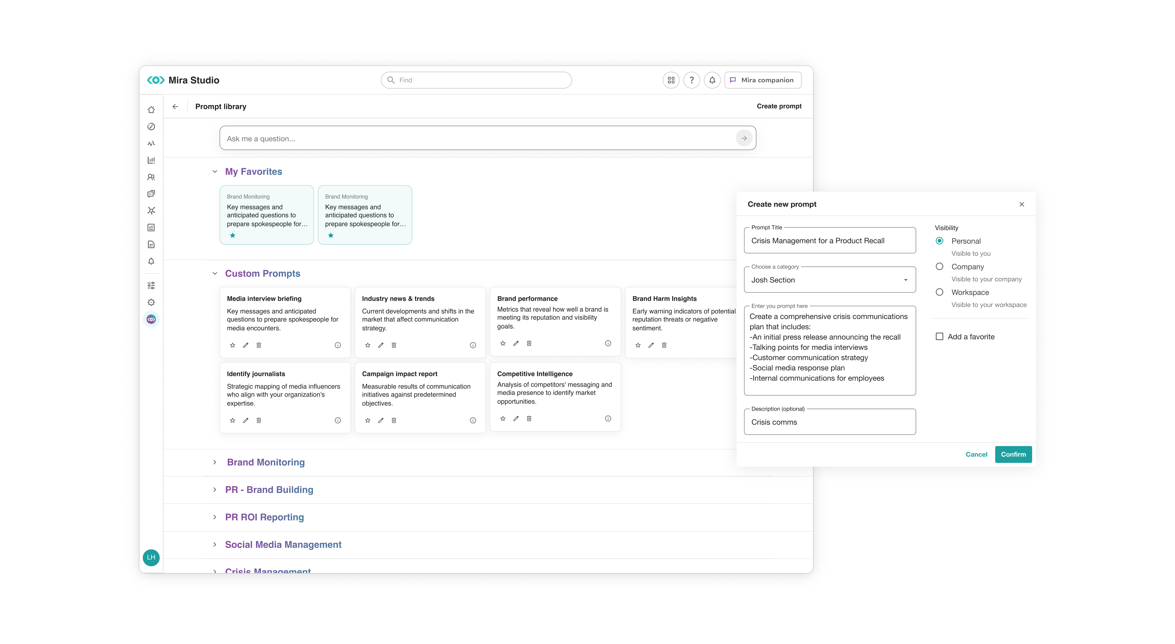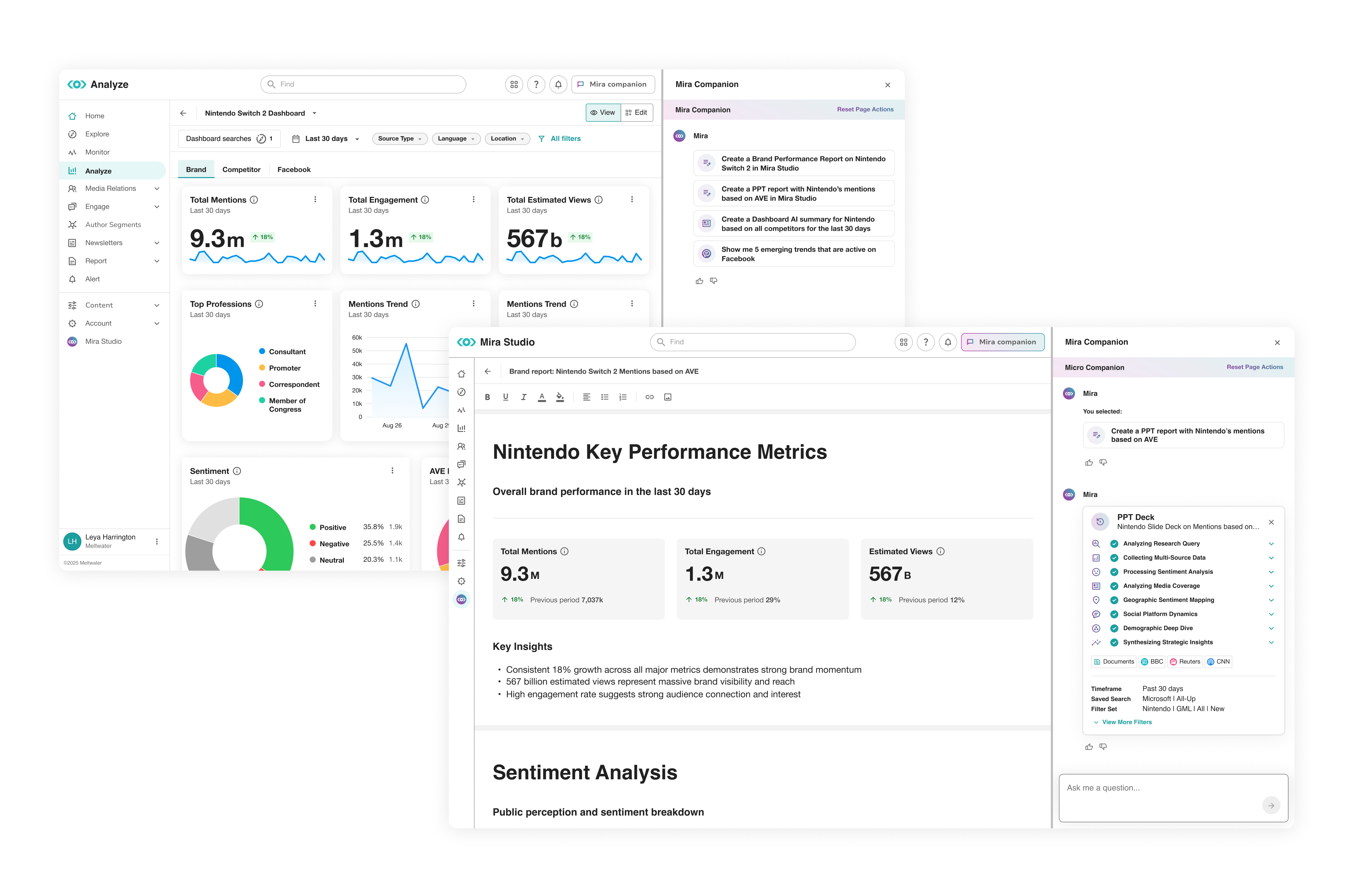 Mira is a game-changing AI teammate marking the next evolution in Meltwater’s AI-powered product suite. Combining the power of AI agents and GenAI, Mira delivers instant insights through an intuitive chat-based interface, streamlining time-consuming workflows such as news briefings, brand monitoring, competitive intelligence and much more. She acts as a game-changing teammate, weaving together the threads of AI agents and GenAI to deliver instant clarity. Where there was once the drudgery of routine work—news briefings, brand monitoring—Mira brings the light of intelligent automation.